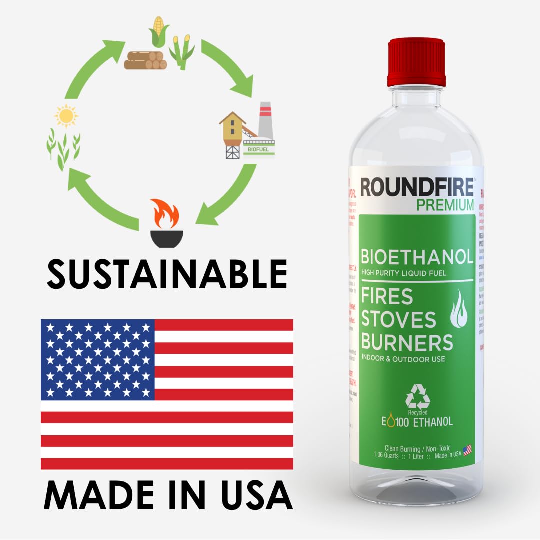 ROUNDFIRE Premium Bioethanol Tabletop Fire Pit - Fuel for Fire, Denatured Alcohol Ethanol Fuel